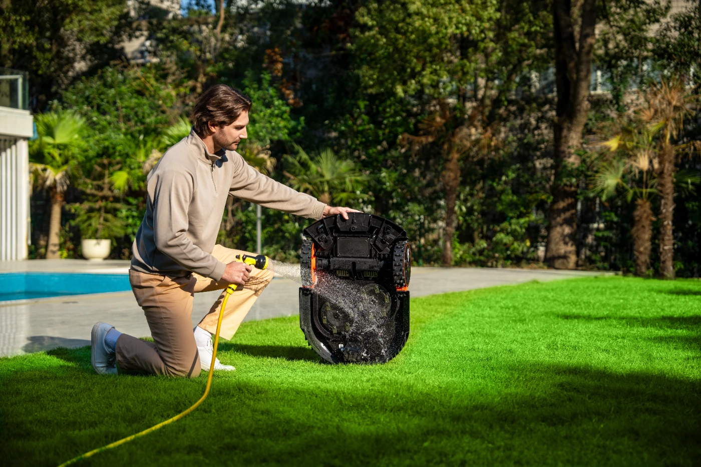 Robot tagliaerba con trazione integrale AWD, Vision con intelligenza artificiale a tre ruote motrici per giardini fino a 6000 m²